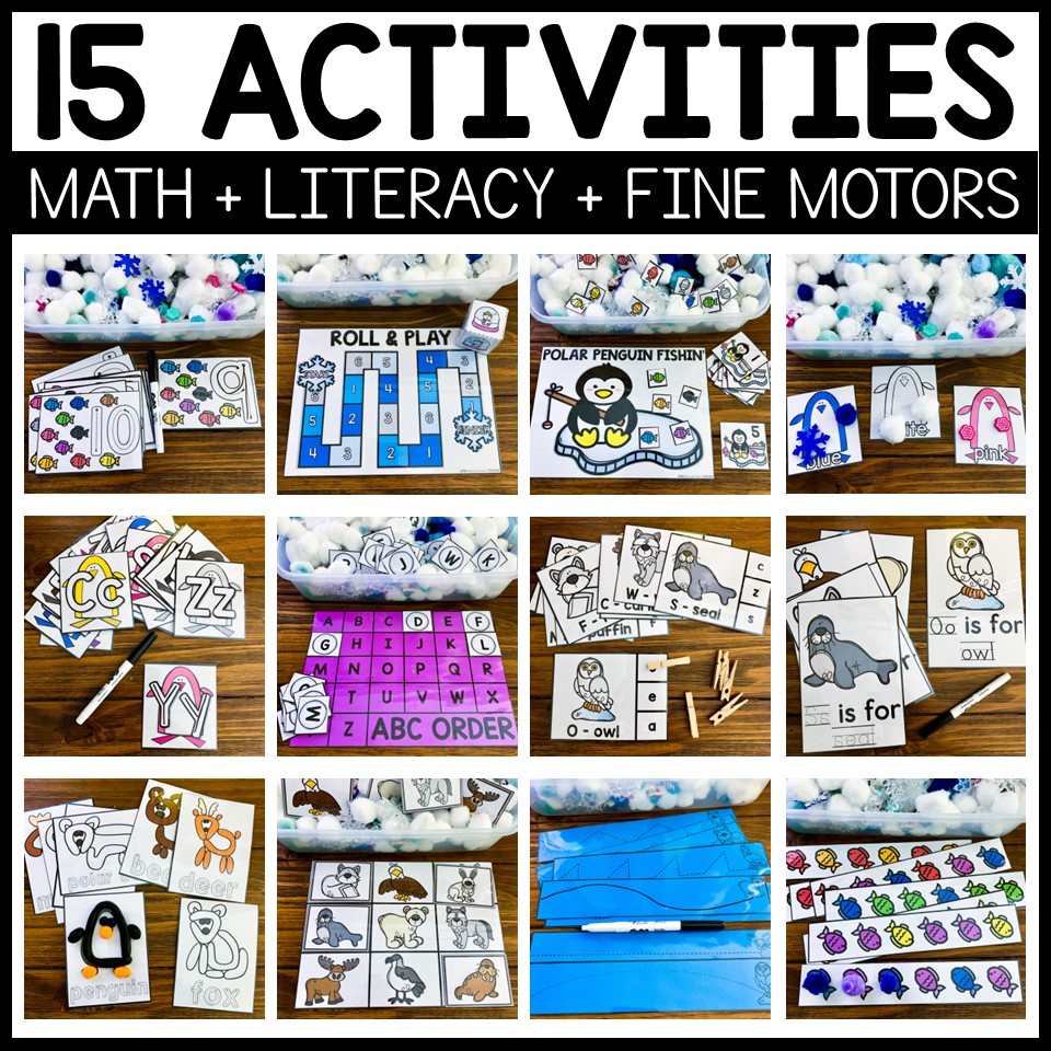 This Polar Animals Preschool theme is sure to give your little learners TONS of fun practice! Children will have 15 center-style activities to choose from – 5 Math, 5 Literacy and 5 Fine Motor centers. In addition, I’ve included book recommendations for 5 polar animals theme picture books and links to their read aloud videos on YouTube!
