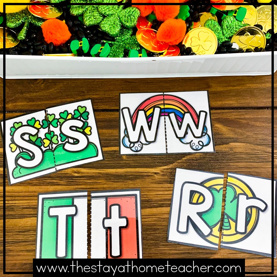 Any other puzzle lovers out there?? Upper and lowercase letter puzzles are a great way to spice up your literacy practice! To complete this activity, children put together the St. Patrick’s Day themed pictures together to match upper and lowercase letters.