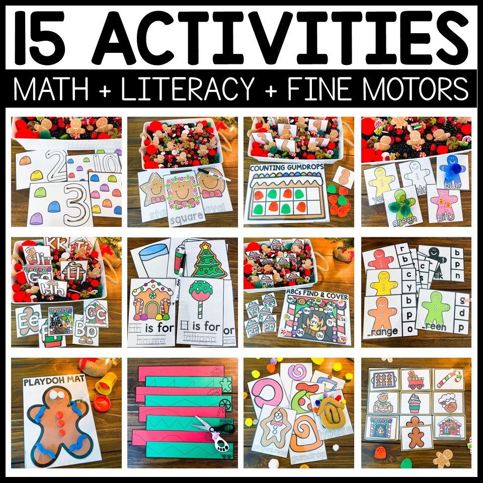 This Gingerbread Preschool theme is sure to give your little learners TONS of fun practice! Children will have 15 center-style activities to choose from – 5 Math, 5 Literacy and 5 Fine Motor centers. In addition, I’ve included book recommendations for 5 gingerbread theme picture books and links to their read aloud videos on YouTube!
