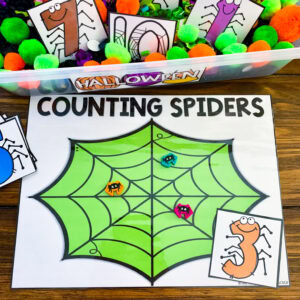 One of my favorite Literacy activities from our pumpkin theme is the one shown above. To use, children choose pumpkin cards from their sensory bin and identify the pictures on them. Then they identify the beginning sound of the picture and place the pumpkin on the letter that makes that sound. They’ll continue until all of the letters have been covered!