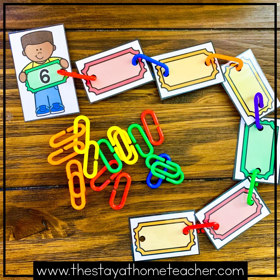 One of my favorite Math activities from this theme is the activity shown above! Linking activities are such a fun way to combine fine motor skills practice with academic skills! To use this activity, children identify the numbers on the kid cards. Then using the provided tickets, children link the correct amount of tickets to that card! (Ex. The card with the number 8 on it should have 8 tickets linked to it.)
